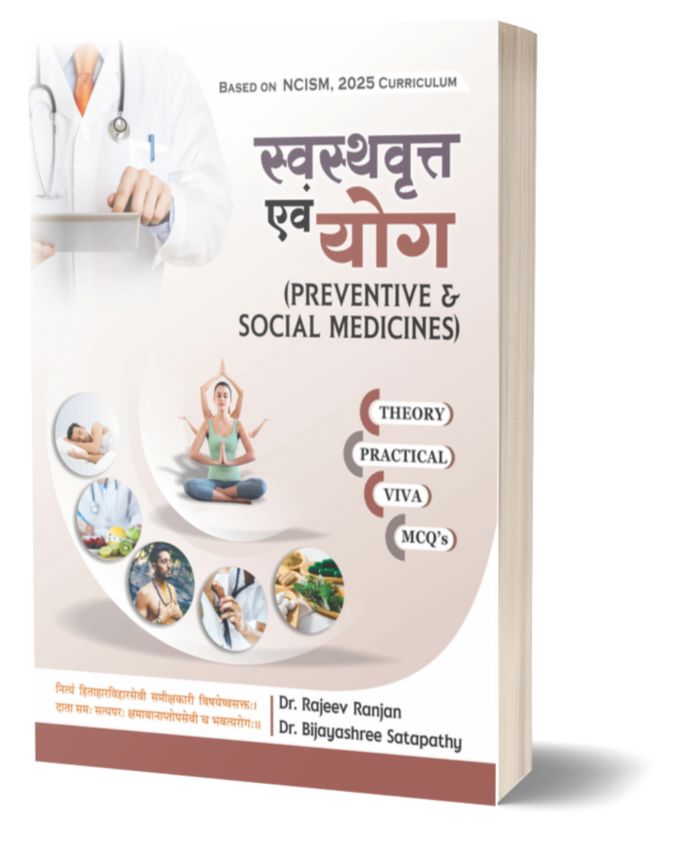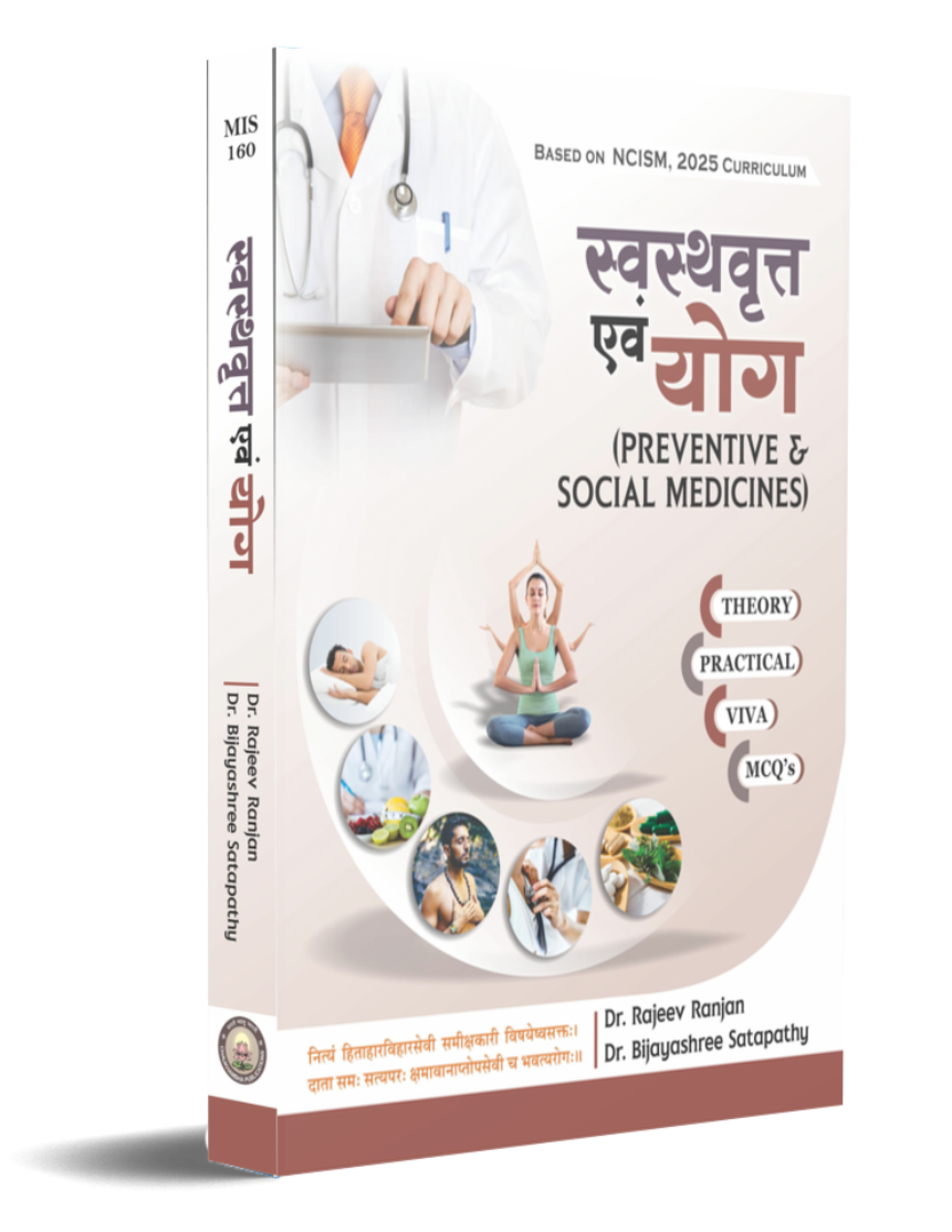 Book Swasthavritta Evam Yoga by Dr. Rajeev Ranjan and Dr. Bijayashree Satapathy Recomanded for BAMS 2nd Year Student (As per NCISM, Syllabus).Swasthavritta Evam Yoga is a comprehensive textbook designed as per the NCISM syllabus, blending Ayurvedic principles with modern lifestyle management. It covers daily and seasonal routines, diet, hygiene, meditation, and preventive healthcare practices. The book highlights a holistic approach to well-being, integrating physical, mental, social, and spiritual health through Ayurveda and Yoga